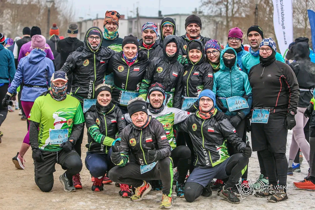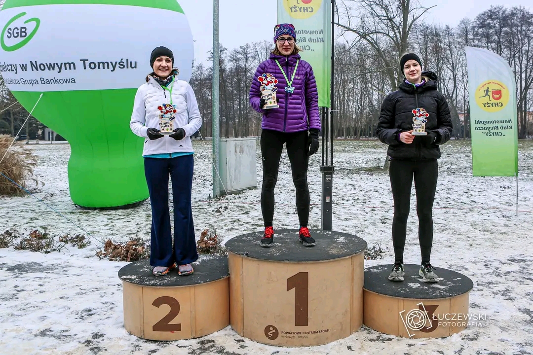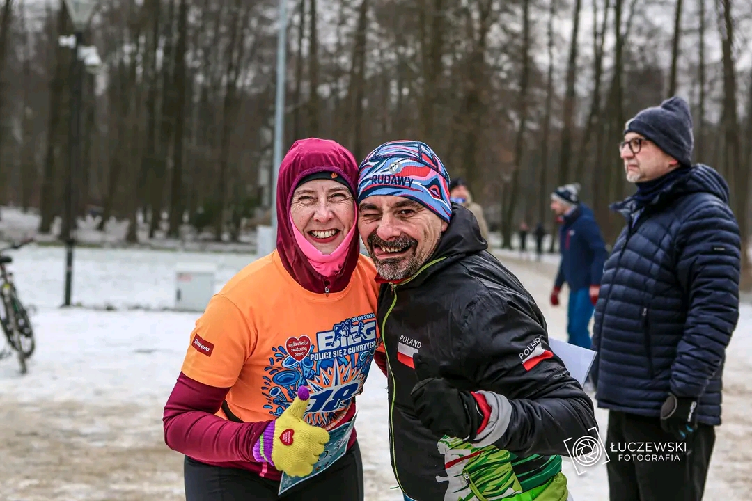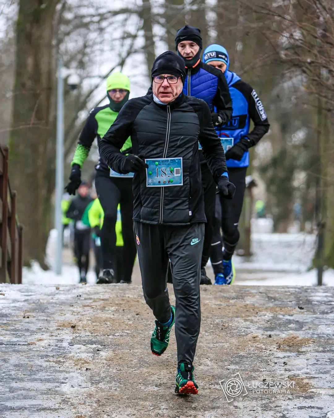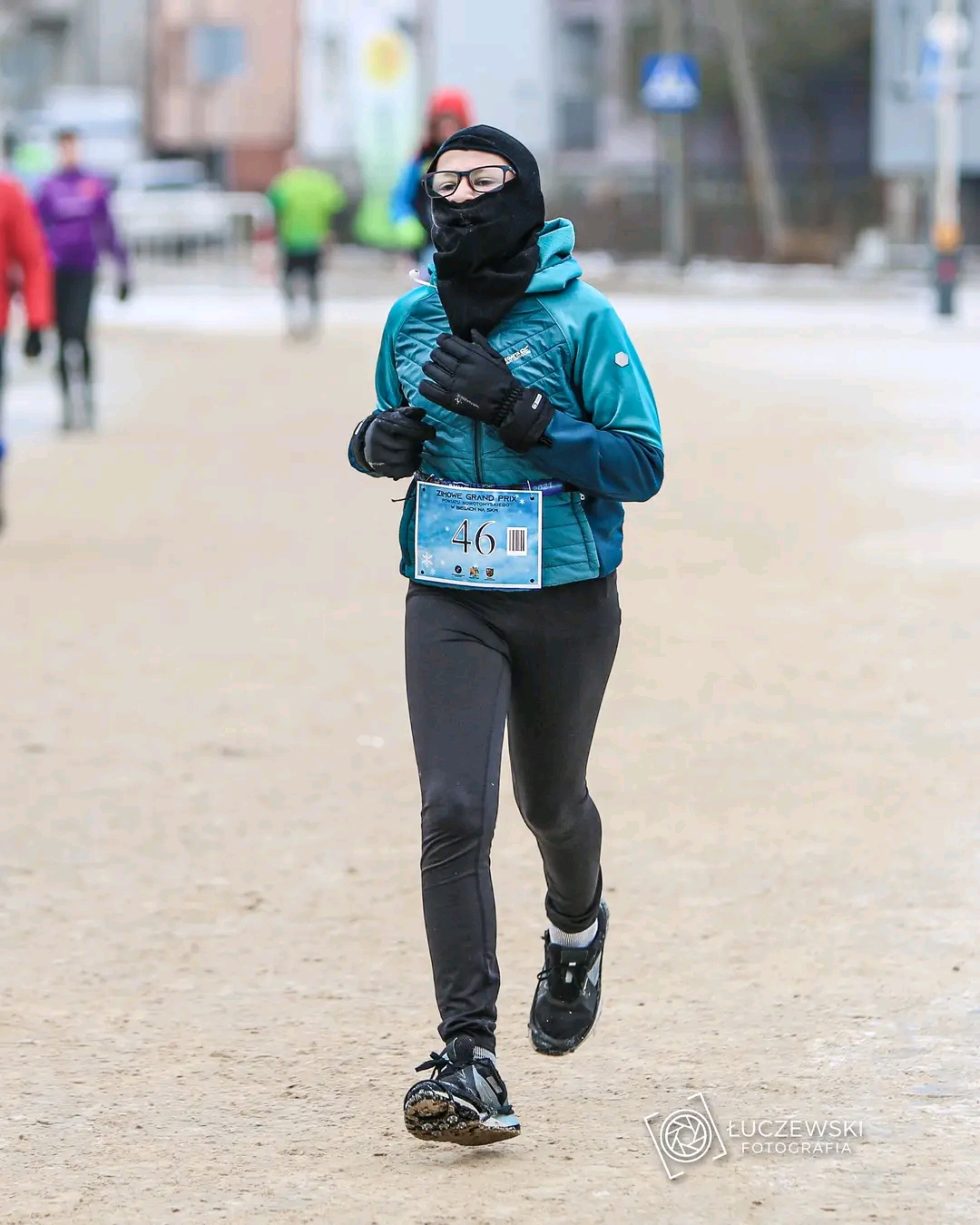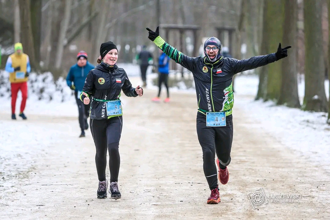 Ale nie tylko organizacyjnie weszło. Biegowo również do przodu✌️. Klubowa BlondAsia nie zwalnia tempa i żwawo napiera po swoje kolejne podium pierwszej kobitki OPEN. Nawet ostry mróz jej nie przeszkadza🤷‍♂️. Brawissimo!!! Albowiem warun srogi był🥶.  Ale służby zachowały się wzorowo i tak sypnęli piochem, że w środku zimy urządzili w parku plażę Copacabana⛱️! Wielkie niech będą im dzięki 👌! W ten sposób mogliśmy zapodawać, ile było w baku🚀, dotrzymując kroku rozkręcającej się młodzieży – do Natalii od państwa Andrzejczaków, Jasia od państwa Guzików, dołączył Hubert Torchała, natomiast Hania Bielawa (pod czujnym okiem mami☝️) wręczała medale dla finiszujących🎖. Rosną kolejne biegowe duszyczki☺️! Tak trzymać 👍